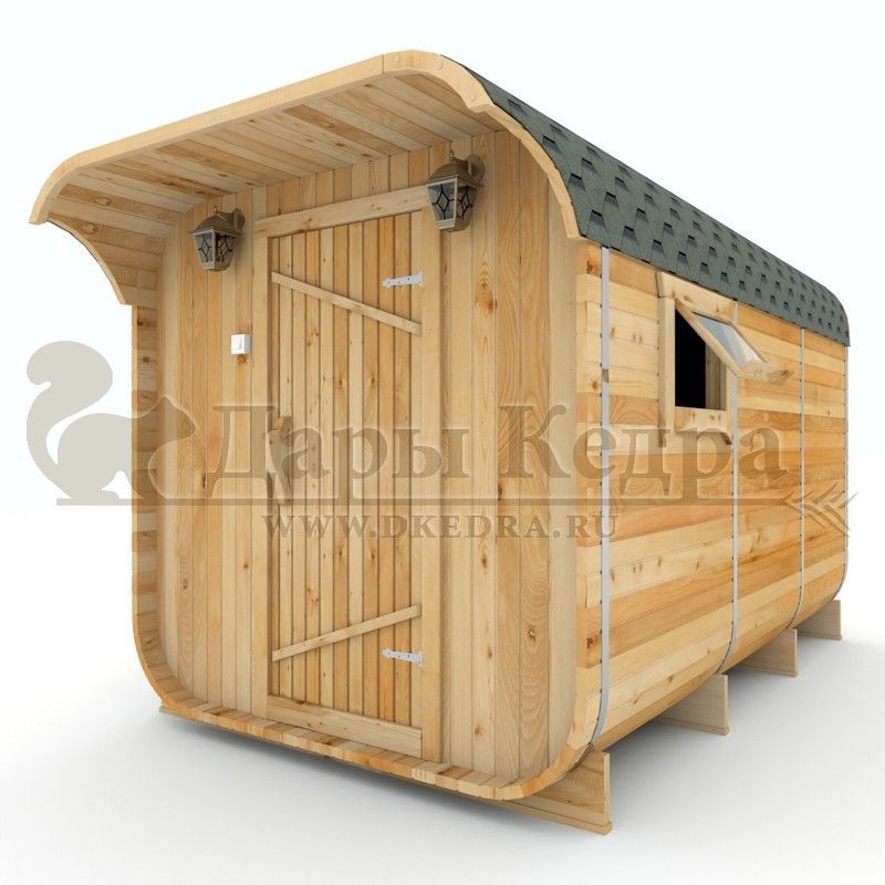 Баня-бочка круглая из кедра с козырьком (все размеры)