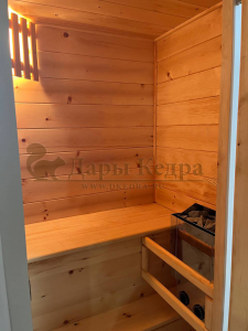 Финская сауна с электрокаменкой представляет собой компактную парную кабину, изготовленную из целебной древесины сибирского кедра. Финская