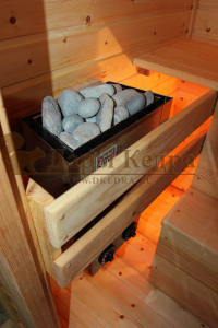 Это специально оборудованная готовая деревянная кабина для сухого и влажного парения. Электропечь нагревает пространство внутри и позволяет сбрызгивать камни водой, слегка увлажняя воздух. Такая процедура позволяет избежать перегрева. Сауна обшита снаружи и внутри кедровой вагонкой и имеет теплоизоляционный слой. Финская сауна с электропечью подойдет, как для домашнего использования, так и для коммерции. Доставляется в разборном виде щитами, собирается по инструкции с помощью шуруповёрта.